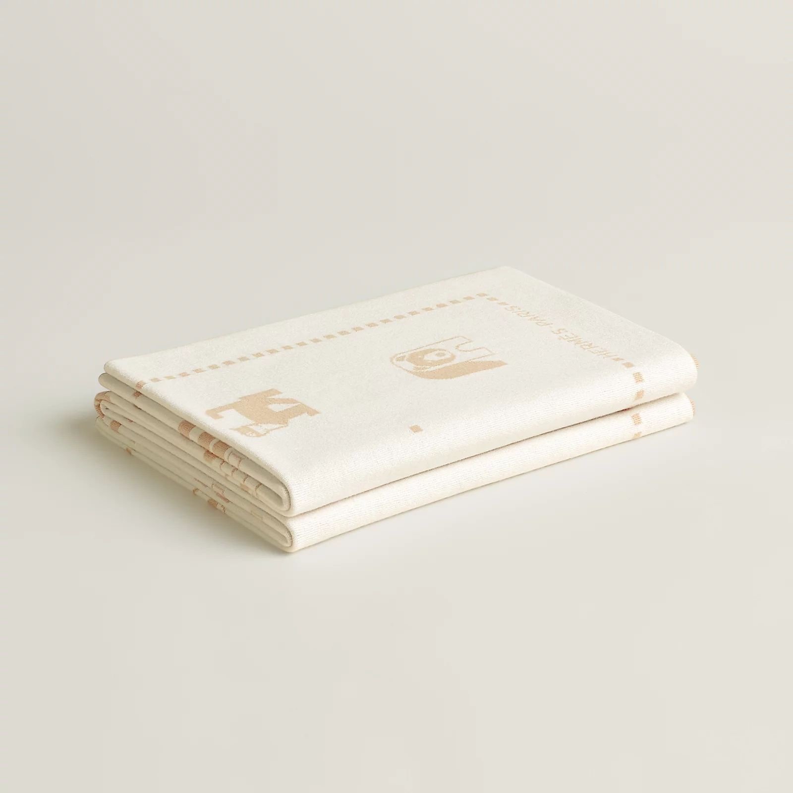PLAID MAILLE BLANKET CABRIOLE 70X100CM 100% COTON BISCUIT